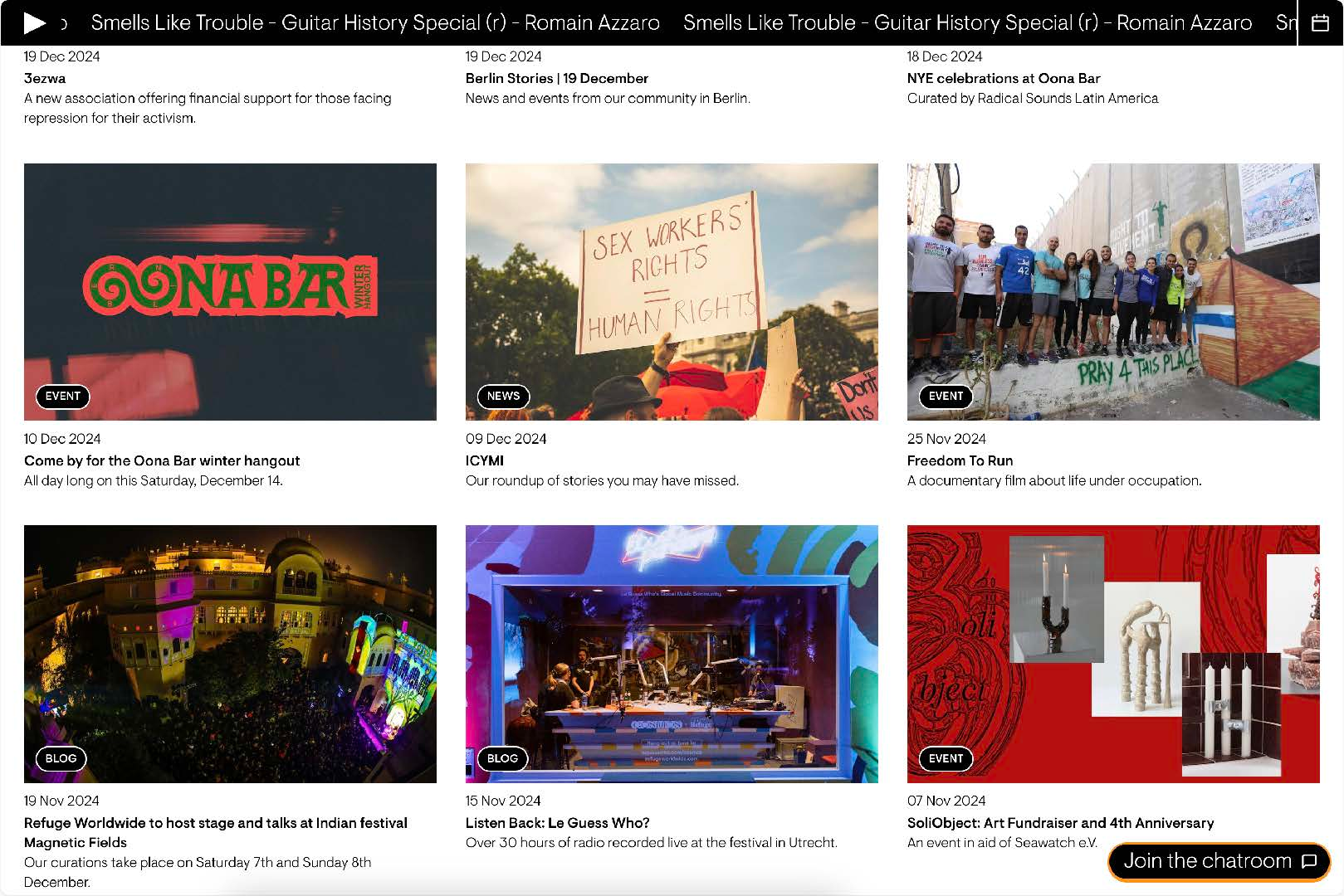 Refuge Worldwide: Uses its platform to relay important community messages.